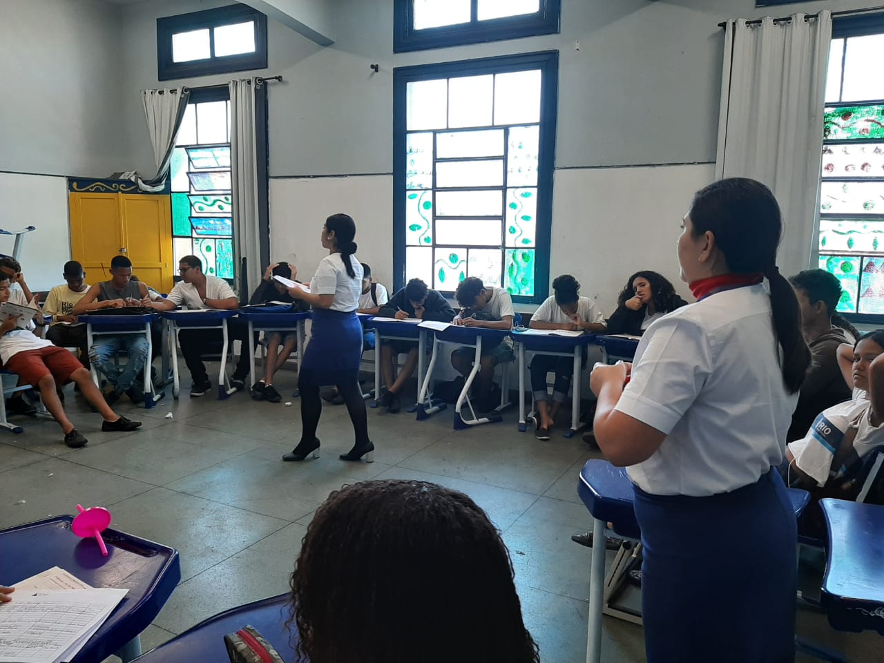 Quatro turmas da Escola Municipal Rivadávia Corrêa, no Centro do Rio de Janeiro, participaram do programa As Vantagens de Permanecer na Escola, na última quarta-feira, dia 02/10. A parceria entre a Latam Airlines Brasil – companhia aérea brasileira – e a Junior Achievement Brasil proporcionou aos 107 alunos dos 8º e 9º anos do ensino fundamental uma manhã diferenciada em sala de aula ao receberem os voluntários da companhia, uniformizados, para falar sobre os impactos negativos da evasão escolar.